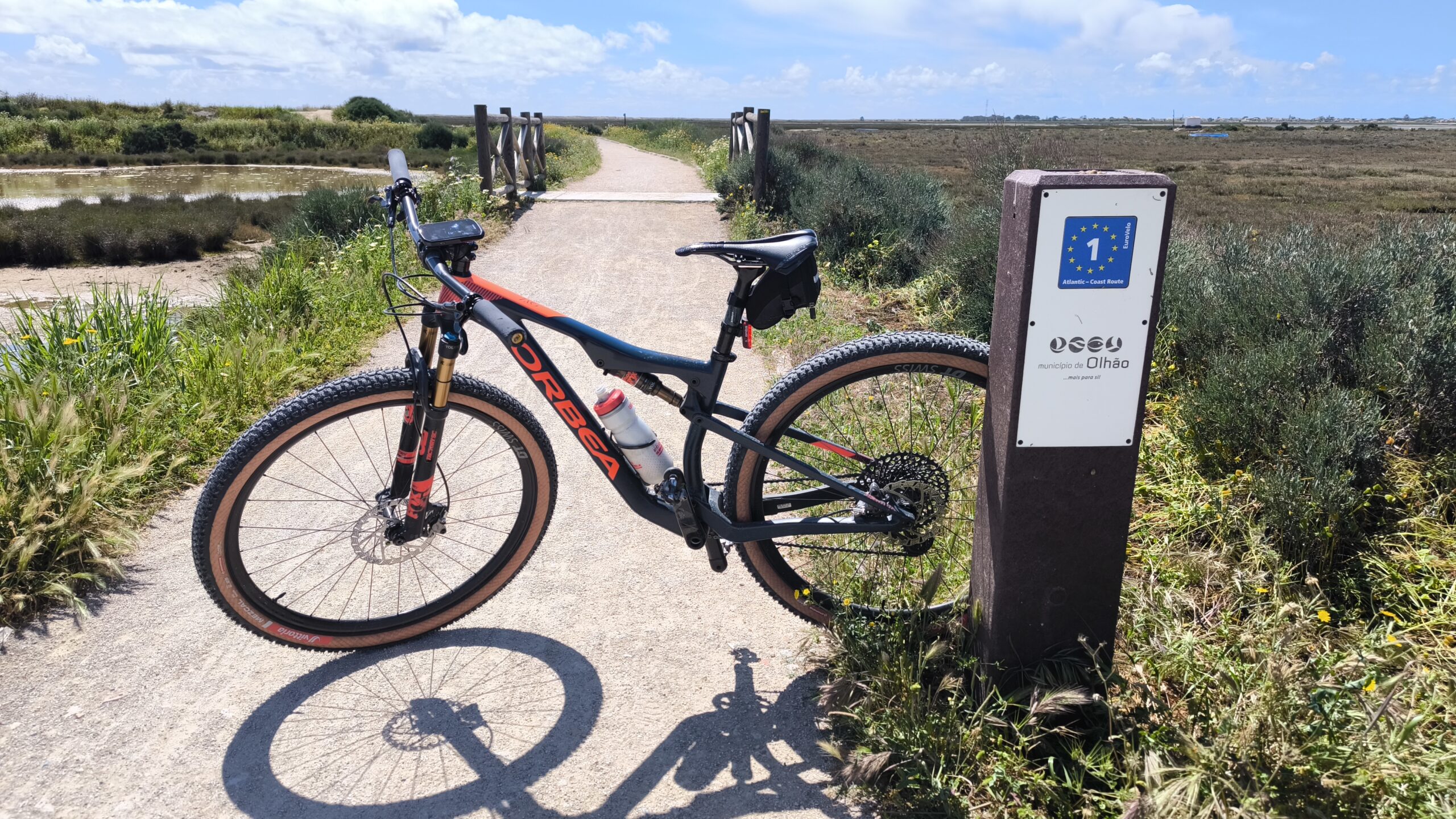 Descendemos casi a nivel de mar. Los olivos ganan por goleada. Pasamos por debajo de la autopista A-22 que llega hasta Lagos, cerca ya del extremo sudoccidental de la península. Estoi queda a nuestra izquierda. Unas buenas rectas nos dejarían, visto y no visto, en Faro. Pero, para terminar, cómo no, esquivamos la N2 y nos desviamos por una carretera paralela que atraviesa el pueblo de Conceiçao. Pedaleamos por la Rúa 25 de Abril, probablemente el nombre de calle más popular en Portugal. Es la fecha sagrada de la identidad moderna del país porque marca el fin de la dictadura más larga de Europa Occidental (48 años). Allá por 1974, un levantamiento militar logró derrocar al régimen de Marcelo Caetano de una forma sorprendentemente pacífica. La archiconocida Revolución de los Claveles tomó su nombre del gesto simbólico de los ciudadanos y soldados que colocaron claveles rojos en las bocas de los fusiles y en los uniformes. Pocas veces un golpe de estado termina en una fiesta popular de liberación, como sucedió aquí. Supongo, no obstante, que tendrá sus matices.